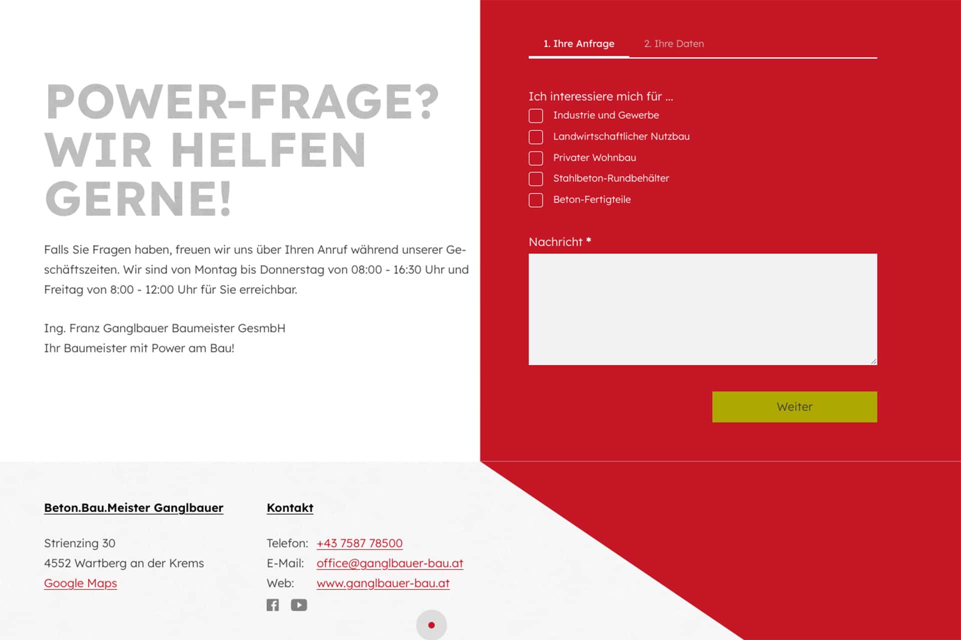 Dank der neuen Website verzeichnet Ganglbauer eine signifikante Steigerung der Kontaktanfragen – ein Beweis für den Erfolg der Zusammenarbeit zwischen uns und Ganglbauer … und gleichzeitig auch ein Beweis für die Wirksamkeit und Wichtigkeit einer conversion-optimierten State-Of-The-Art Homepage.